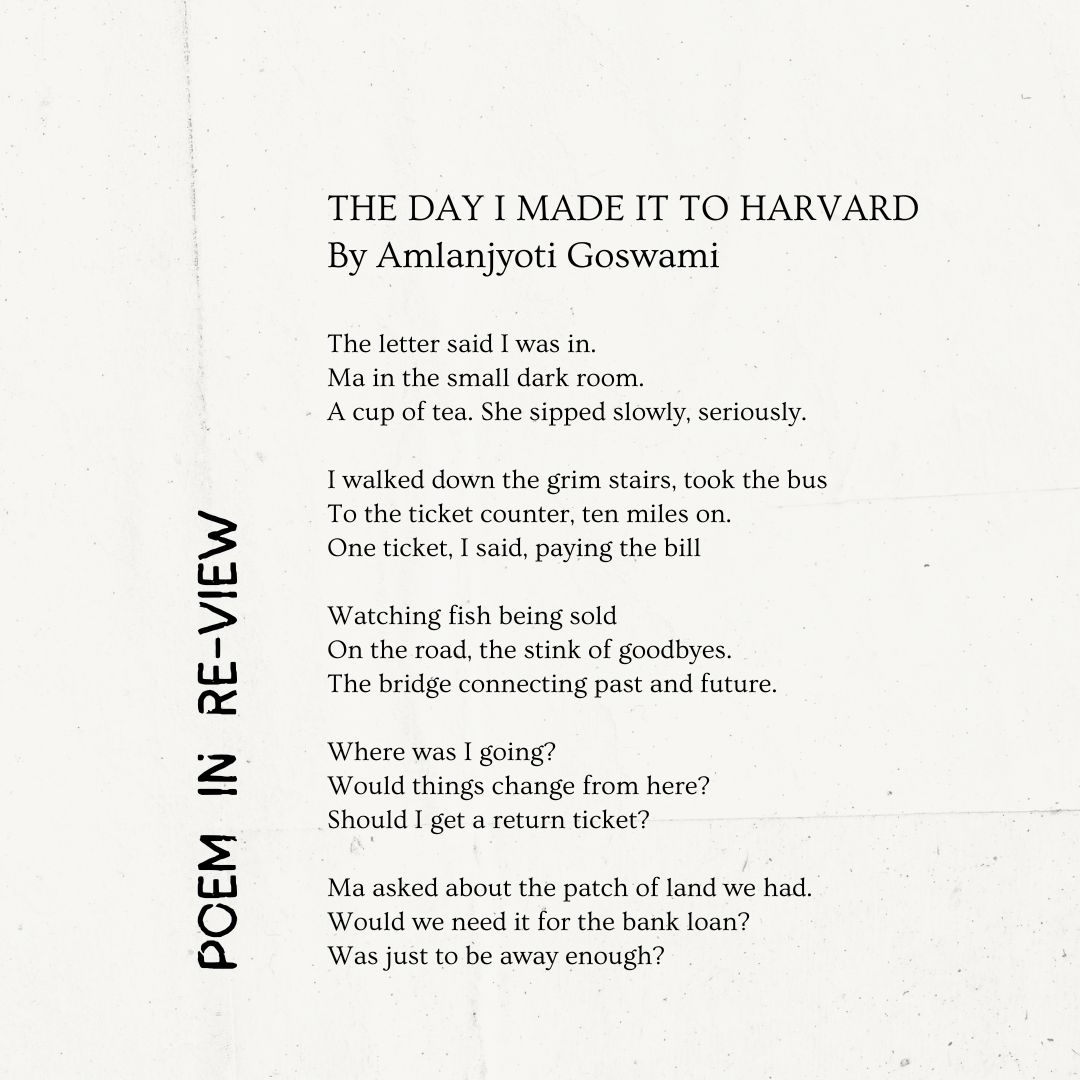 THE DAY I MADE IT TO HARVARD by Amlanjyoti Goswami | Poem in Re-view